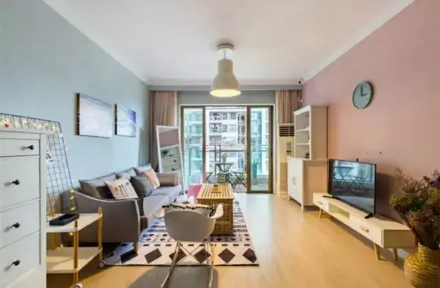 这样阳台就是一个独立的空间了,休闲、娱乐,要是不想被客厅的电视机打扰,可以拉上客厅的窗帘。
