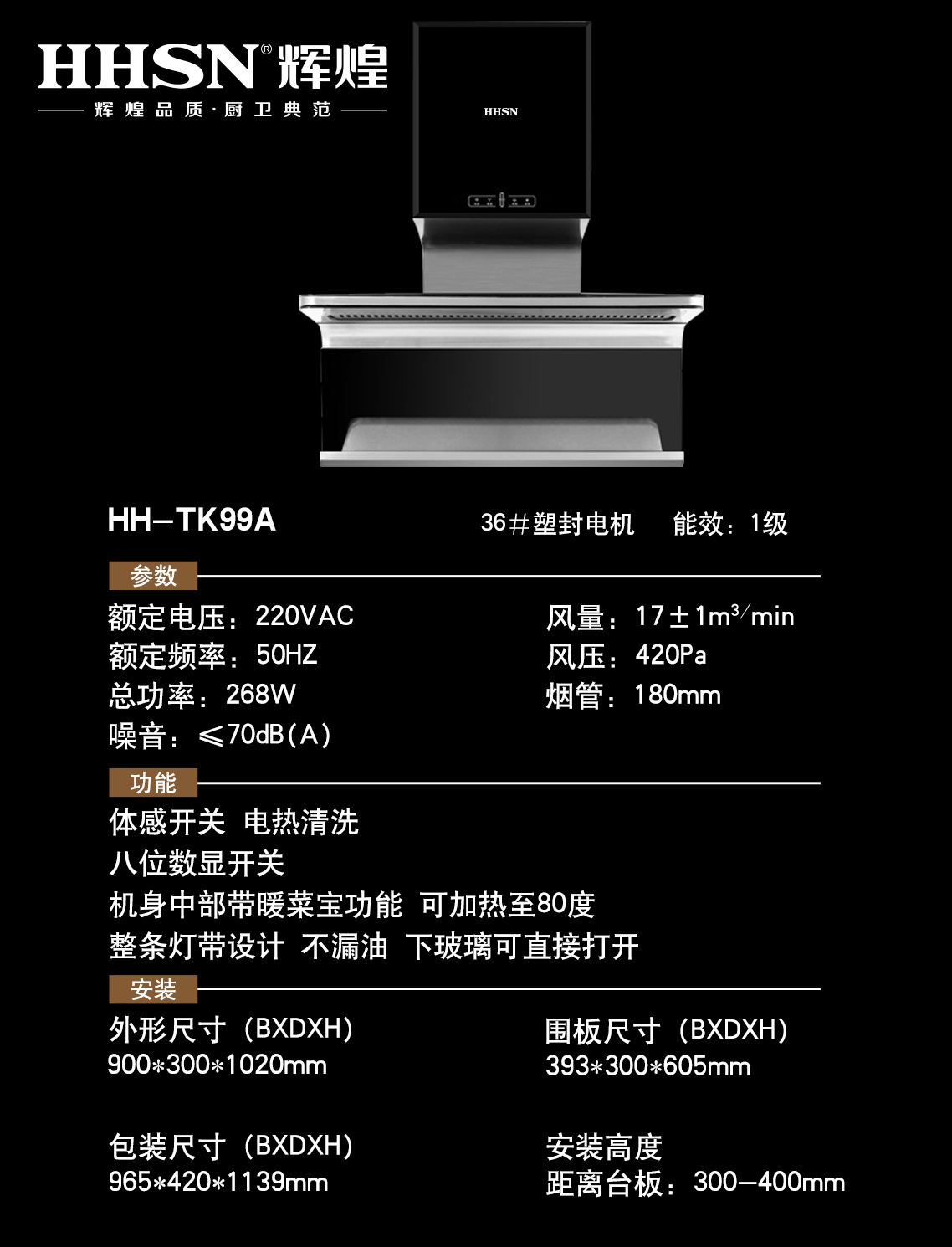 首页 > 产品展示 > 辉煌油烟机HH-TK99A