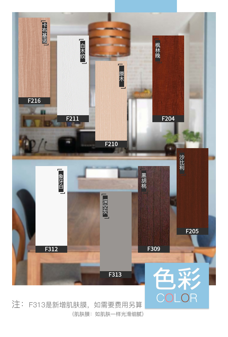 颜色分类:F204-枫林晚 F211-白木纹 F212-深秋 F216-卡布基诺 F308-克里兰夫 F309-黑胡桃 F312-素白 F313-深空灰 F210-原木