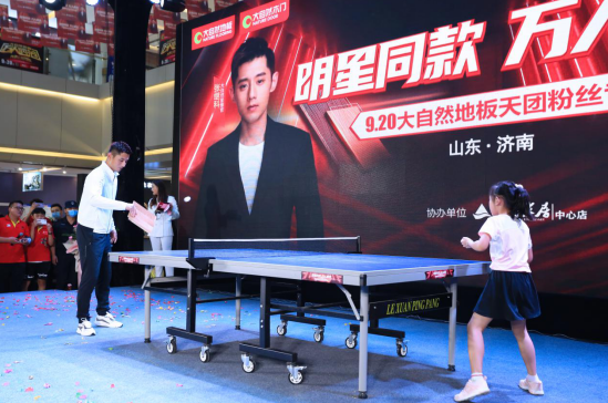 9月20日,奥运乒乓球冠军张继科、奥运跳水冠军田亮、著名影视演员陈紫函、著名影视演员杜若溪,携手“大自然地板天团”——三层实木地板、地暖实木地板、野生原木地板和零醛智造强化地板,现身山东济南、江西南昌、江苏无锡、辽宁沈阳等多个城市,为“明星同款 万人疯抢”大自然地板天团粉丝专场助阵,带来亿元福利回馈,活动现场场面火爆。