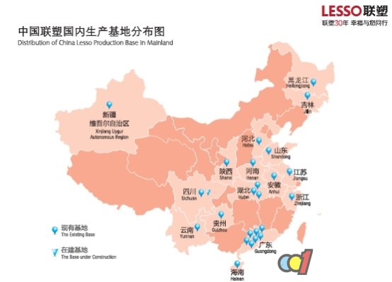 在国内取得突破的同时,联塑集团也没有放松自己发展的脚步,随着国际化、全球化进程步伐的推进,中国联塑已拥有逾50家控股子公司和超过21个主要生产基地,分布于全国16个省份及美国、加拿大、印度、印尼和乌干达等国家,不断完善战略布局。随着中国一带一路大战略的推出,联塑集团也紧跟国家脚步,在国外建立“领尚环球之家”大型建材家居综合体,布局全球20多个国家,60多个城市。