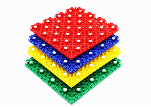 幼儿园弹性垫悬浮塑胶地板独特的表面网格设计迅速排水,避免了雨水对场地的影响,自有的支撑脚结构设计和侧向缓冲设计提供了比传统地面材料更为优越的运动性能和安全保护,维护方便,费用更低。