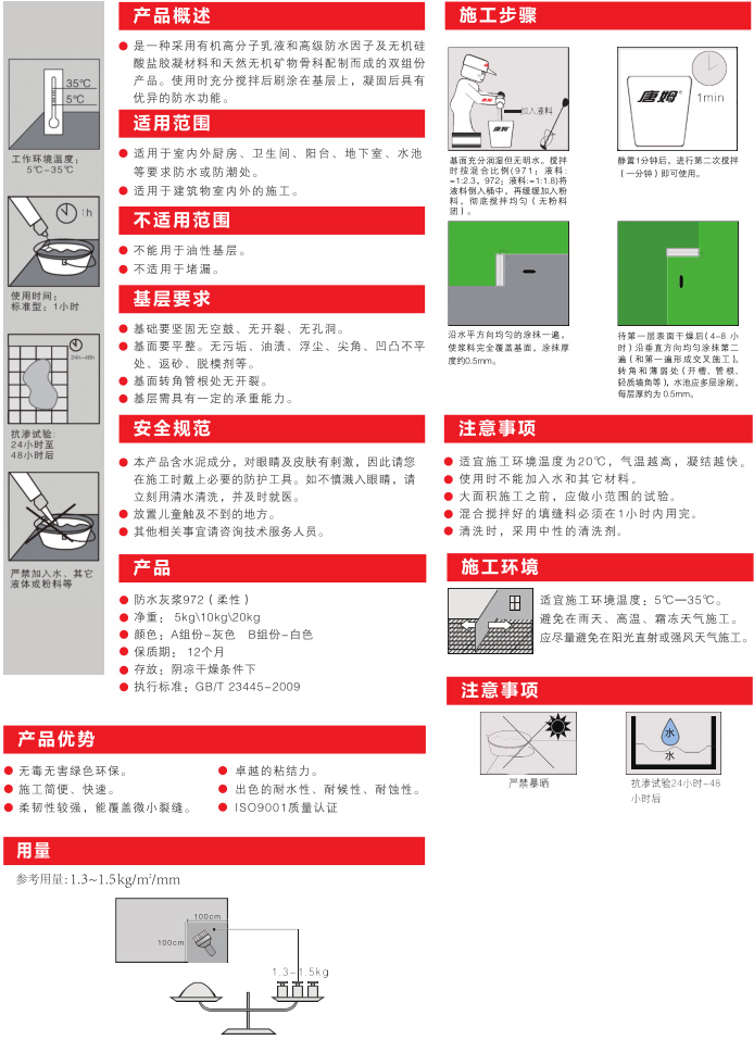 适用于室内外厨房、卫生间、阳台、地下室、水池等要求防水或防潮处。