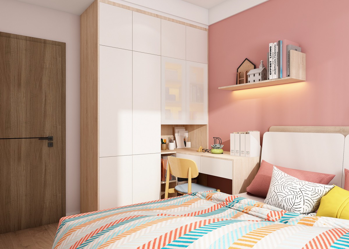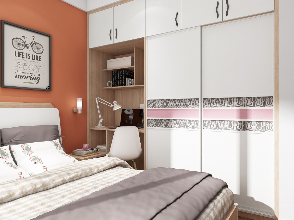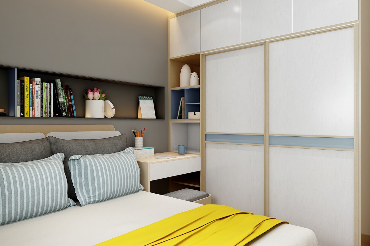 对于没有飘窗的小卧室,我们还有其他方式可以把书桌安排妥妥的。将书桌嵌入衣柜就是一个不错的选择,但这样就意味着我们要压缩衣柜的收纳空间来挤出工作区。