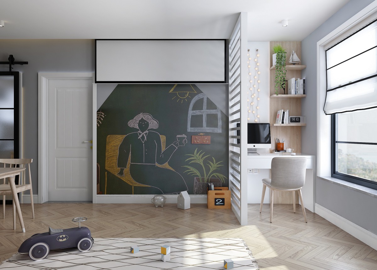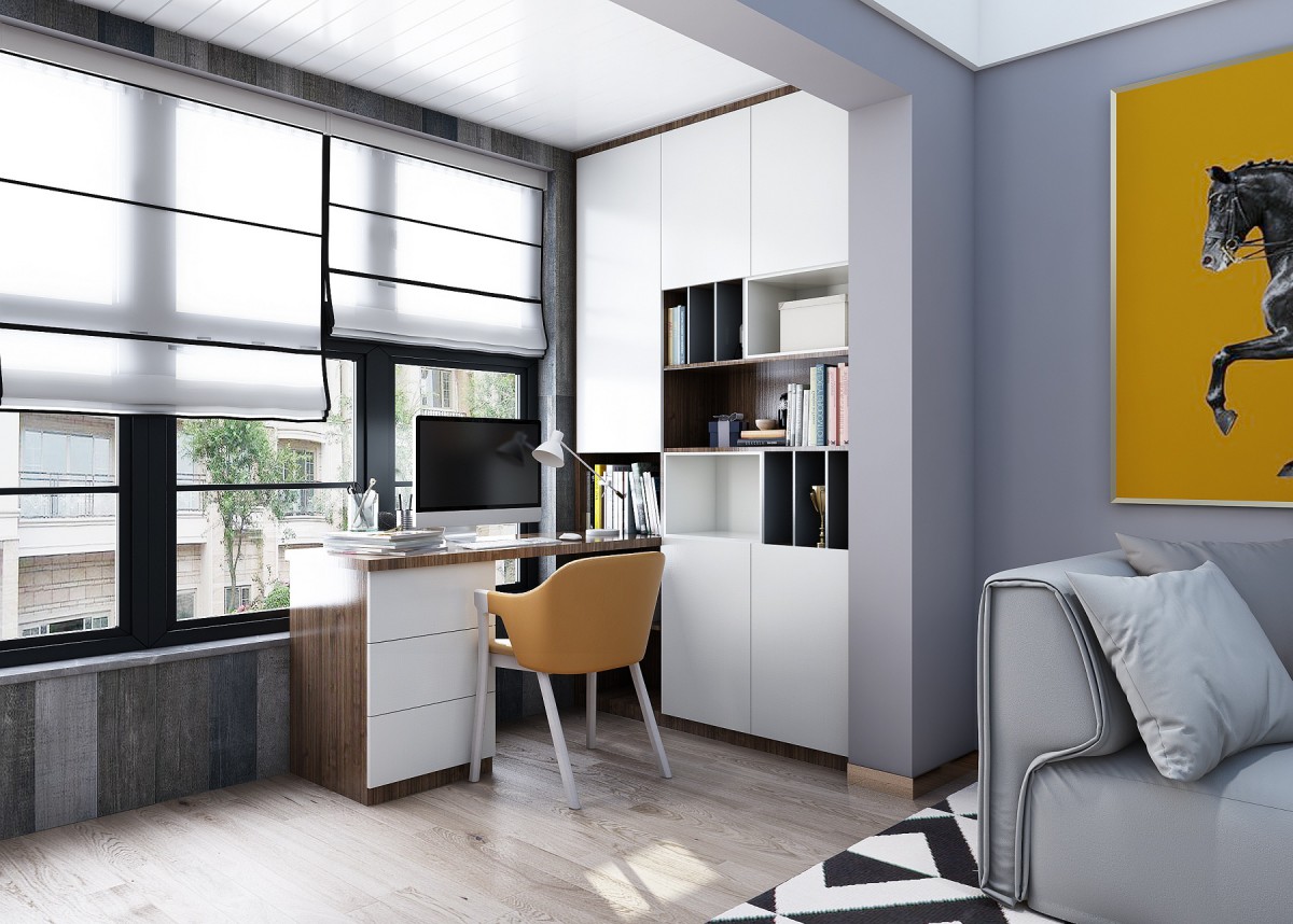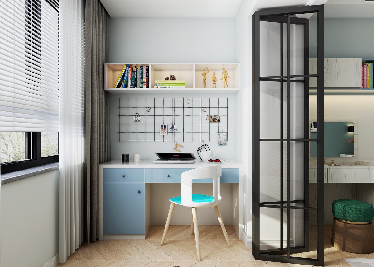 客厅那些被人忽略的小角落,加个小隔断放上书桌,就能秒变舒适的工作区,搭配搁板或置物架做收纳就更实用。