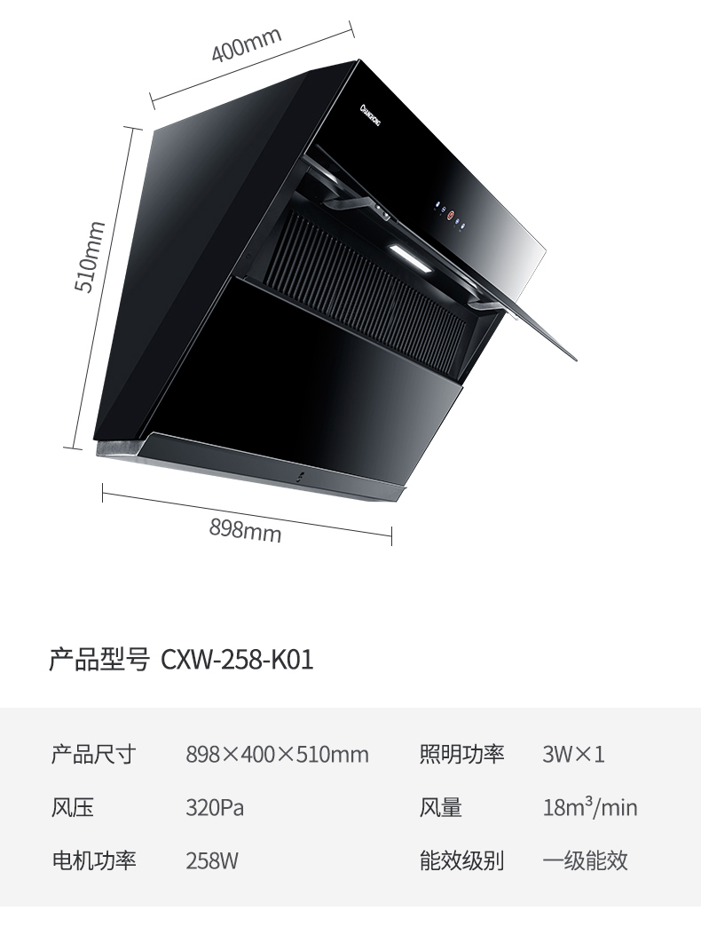 长虹 CHANGHONG 一级能效 18立方米大吸力,自动开合 自动清洗侧吸式油烟机 CXW-258-K01