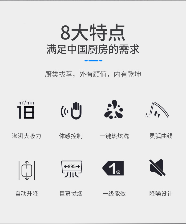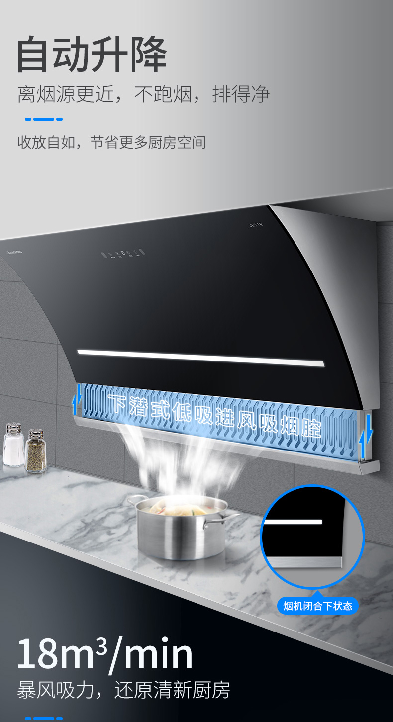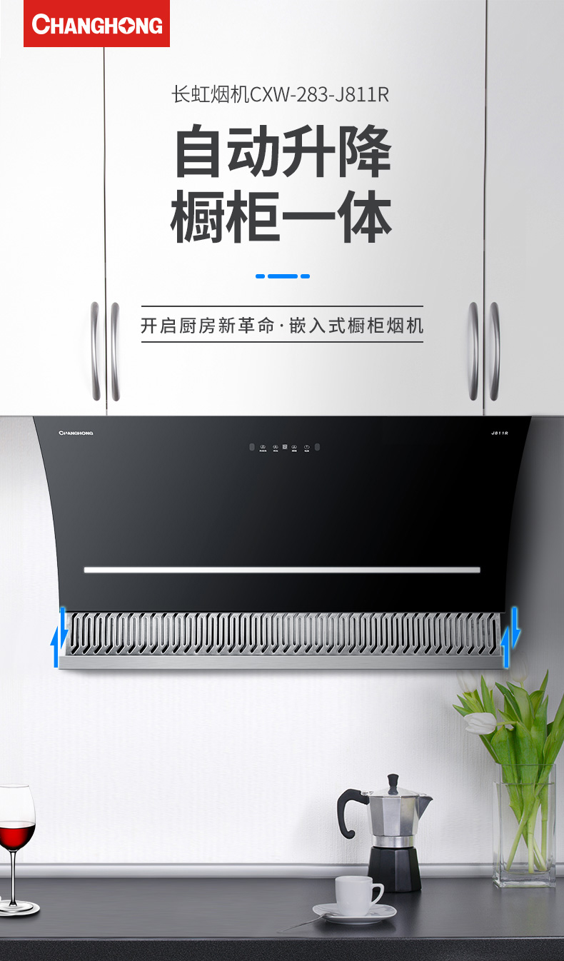 虹 CHANGHONG18立方米大吸力 体感控制 一级能效 一键热清洗 吸油烟机 CXW-283-J811R