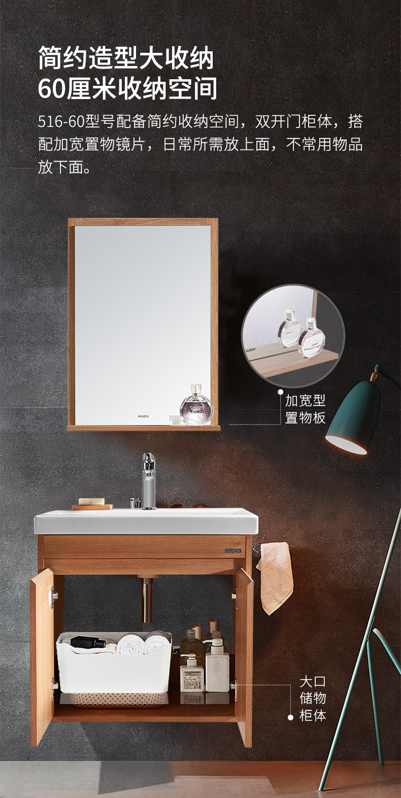 惠达浴室柜组合洗手脸台柜组合卫生间洗漱台简约现代浴室柜1321 516-60
