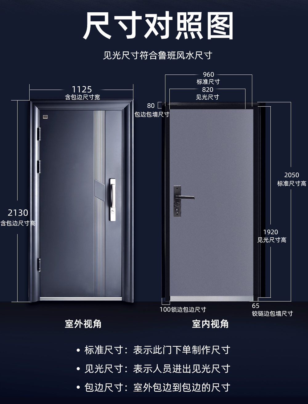 • 颜色分类: 【标准】960*2050+机械锁 【内开】960*2050+机械锁 【标准】960*2050+全自动智能锁+电子猫眼 【加高】960*2150+机械锁 【加高】960*2150+全自动智能锁+电子猫眼 【加高】960*2250+机械锁 【加高】960*2250+全自动智能锁+电子猫眼 【加高加宽】1050*2150+机械锁 【加高加宽】1050*2150+全自动智能锁+电子猫眼 【标准】1170*2050+机械锁 【标准】1170*2050+全自动智能锁+电子猫眼 【加高】1170*2150+机械锁 【加高】1170*2150+全自动智能锁+电子猫眼