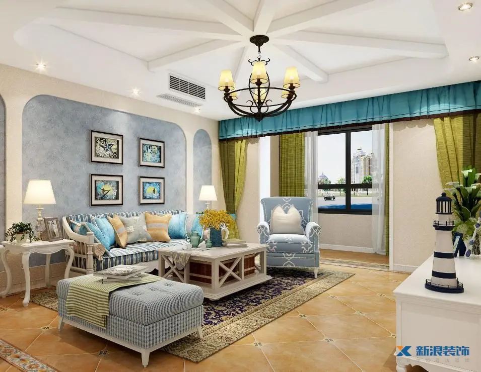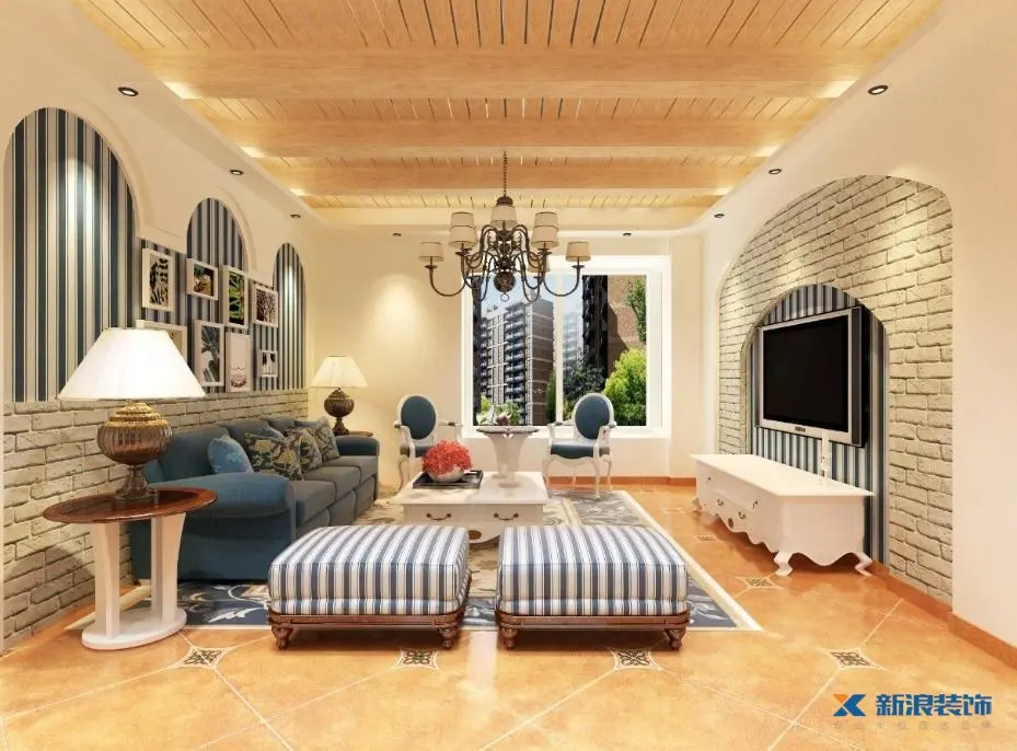 2、将海洋元素应用到家居设计中,给人自然浪漫的感觉。在造型上,广泛运用拱门与半拱门,给人延伸般的透视感。