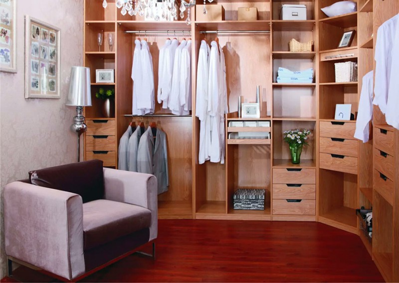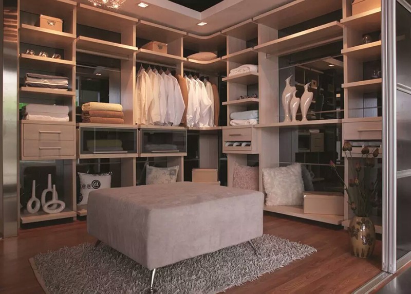 秩序井然的步入式衣帽间,一目了然及其封闭性,集收纳、换衣甚至化妆为一体的空间,在衣帽间里,家人的衣物、鞋帽、包囊、饰物,乃至玩具、被褥等,都可以在此集中归类。