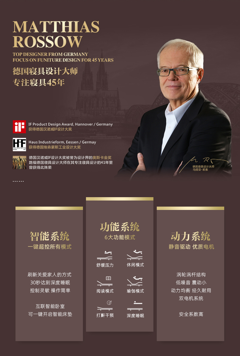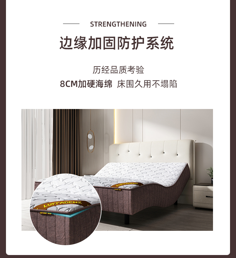 德国路福电动升降智能床垫主卧双人婚床多功能1.8米现代简约T006-L 白色 1500*2000