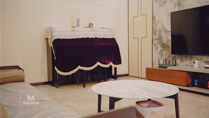 客厅作为家中主要的互动与放松区域,除了放置了舒适的软包沙发等家具,还划分出来一部分的空间来摆放孩子日常练习的钢琴。另外,业主还为孩子们配备了专用的玩具收纳盒,让孩子们在客厅玩乐时也能养成收纳的好习惯。
