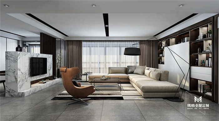 “硬隔断”的划分更明显,隐私性更强,可以把会客、休闲、学习的空间完全独立开来,做到空间切割明确;而“软隔断”的划分则相对模糊,也不会影响空间的大小,一般通过空间高低的不同、灯光差异、家具材质的不同来进行分区。