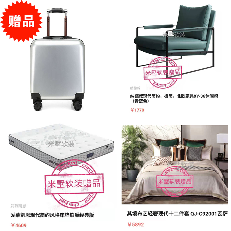 2.进店消费正价产品达8千者可送拉杆箱一把!满一万者可送米墅单椅一把!满二万者可送米墅乳胶床垫一床或米墅高端床品十二件套一床!