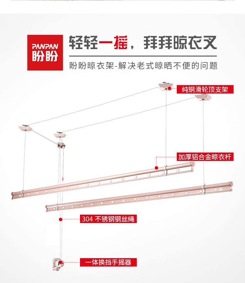 盼盼升降晾衣架阳台晾衣杆手摇双杆式凉衣架室内室外挂衣架家用晒被子晒衣架S6