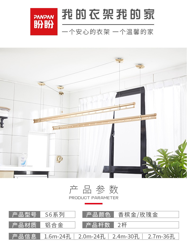 盼盼升降晾衣架阳台晾衣杆家用晒被子晒衣架S6