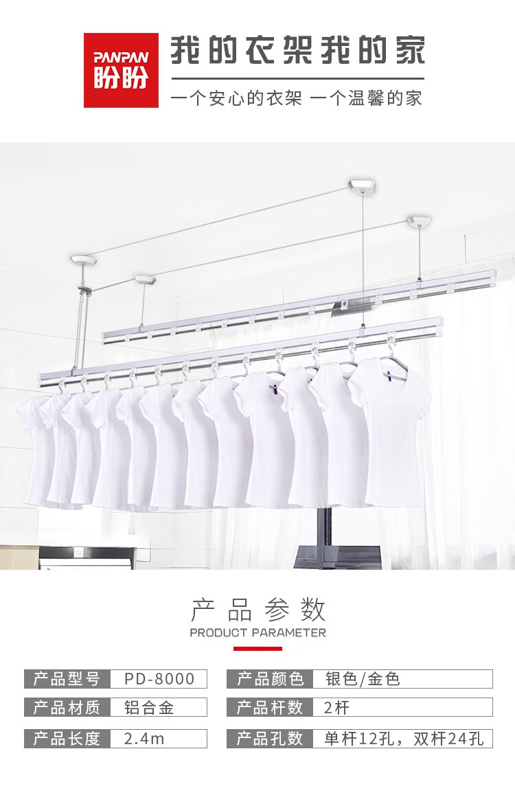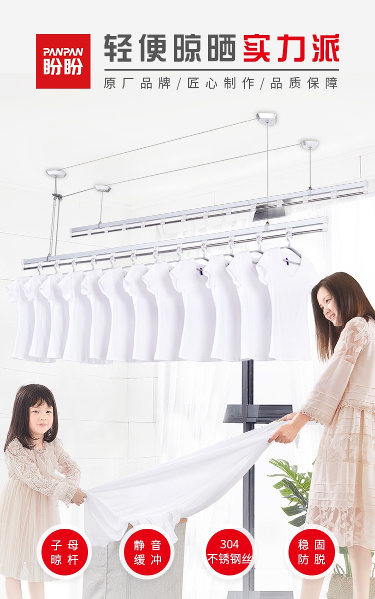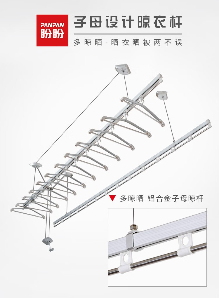 盼盼 手摇升降晾衣架 双杆式晾衣杆 扩容子母型晾衣杆