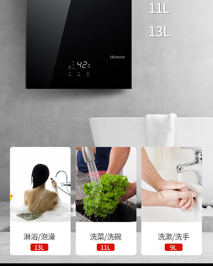 核心卖点:DIY变升洗浴,9-11-13L,舒适沐浴,节能省气。