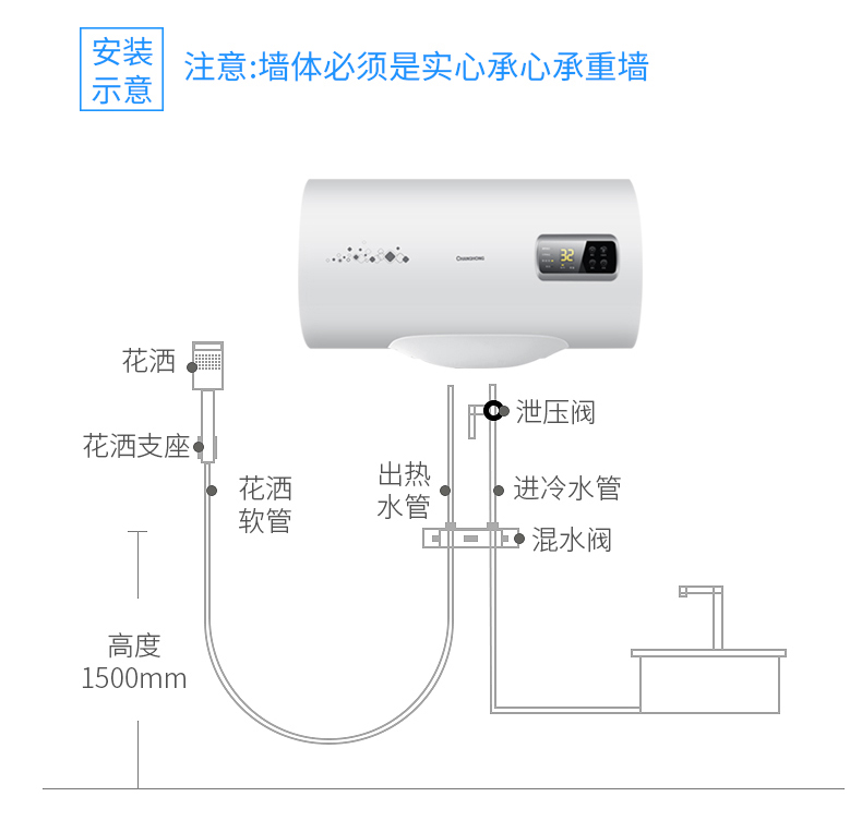 长虹 CHANGHONG 3000W60升 智能出水断电 24小时倒计时预约储水式电热水器ZSDF-Y60D16FA