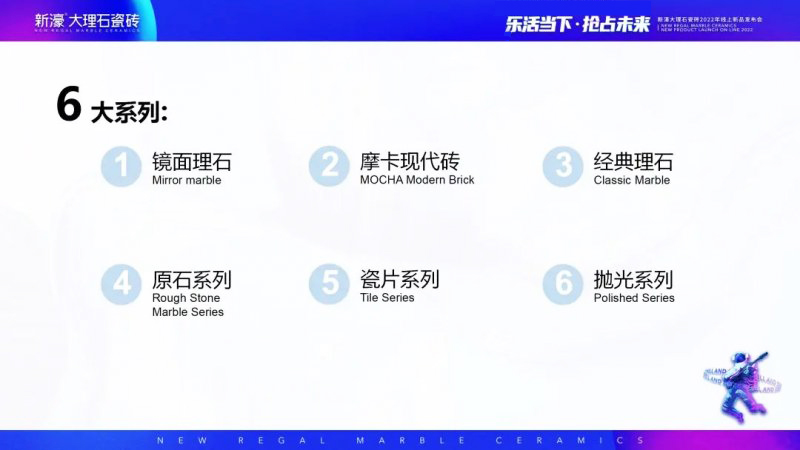 4月18日,「乐活当下·抢占未来」新濠大理石瓷砖2022线上新品发布会正式举行,与全国经销商家人们云集线上,共同见证新濠大理石瓷砖新品的重磅发布。