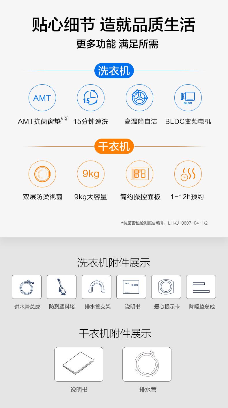首页 > 产品中心 > 海尔洗衣机烘干机EG100B129W+GBNE9-A636