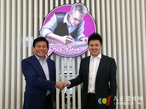 久盛地板董事局主席张恩玖(左)、久盛地板董事长张凯(右)