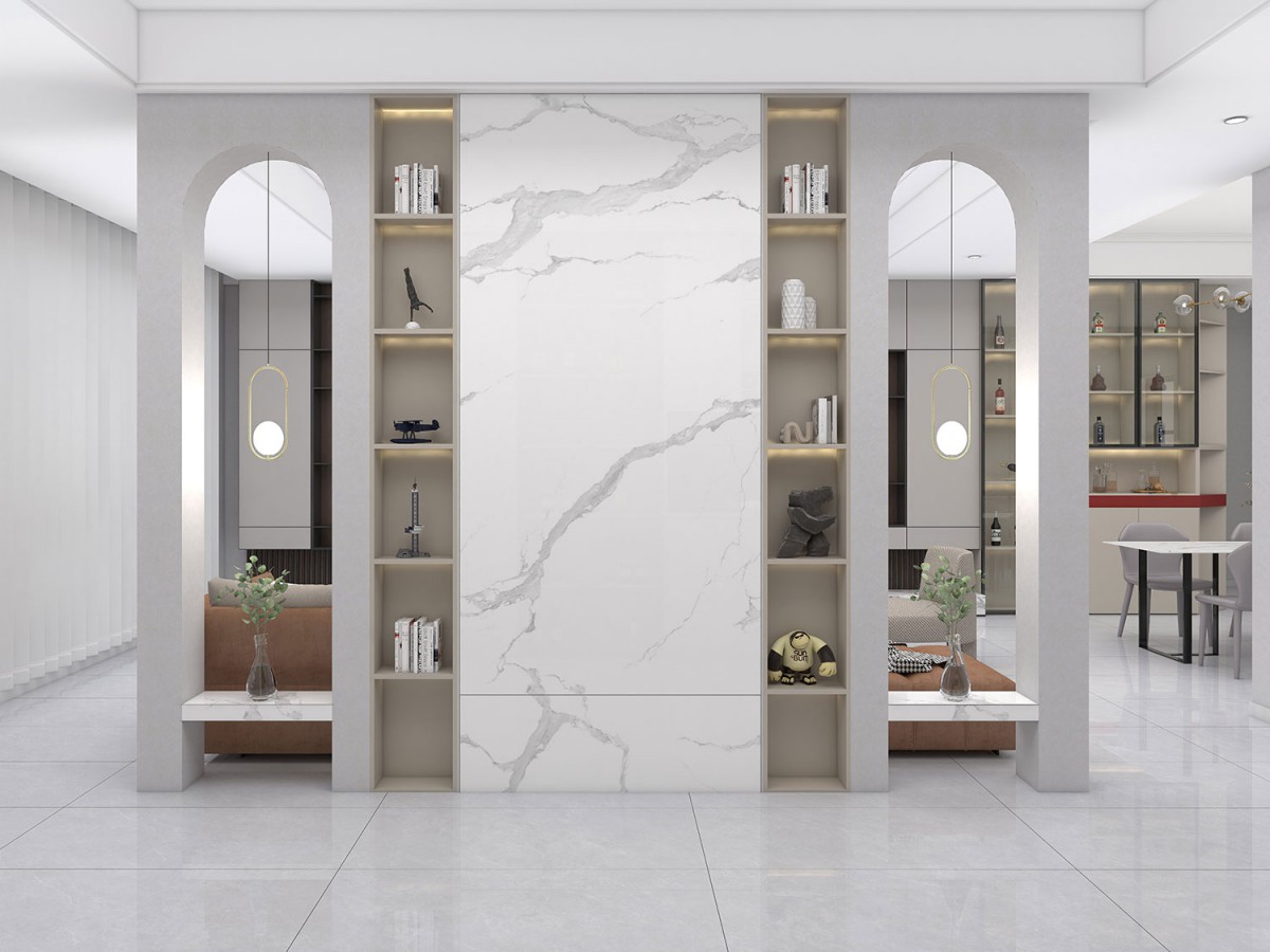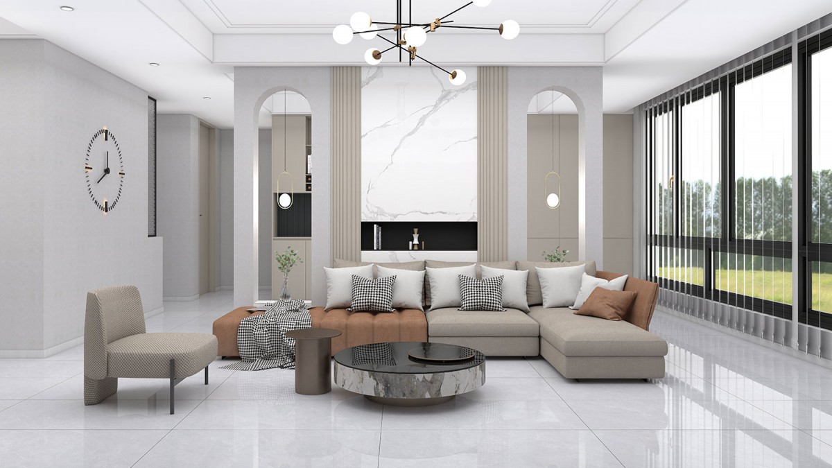 迈尔奇灰作为地面的背景色,有着动人的肌理,极具高级的质感,并不单调乏味。缀以清新的白色,使空间散发出高洁的气质,家居品质感油然而生。