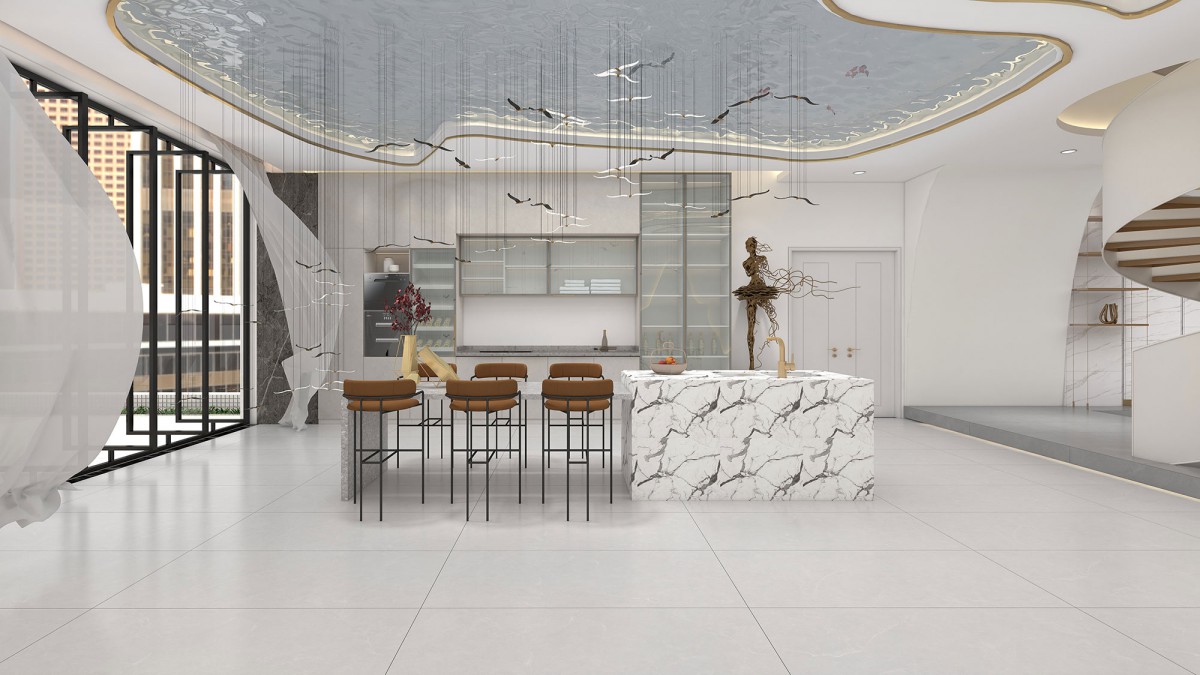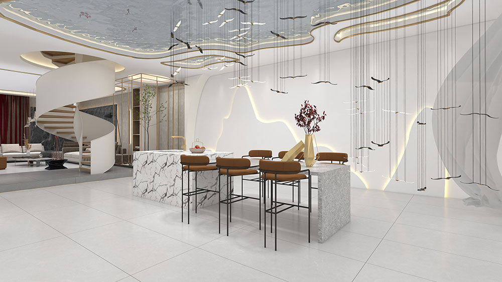 柔美雅致的清风朗月,与空间亲切地对话,运用在地面的铺设,带来生动的呼吸感。通过创造性的设计、线条的组合、高级的色彩、轻奢的元素,打造了一个大气高贵而又优雅时尚的空间。