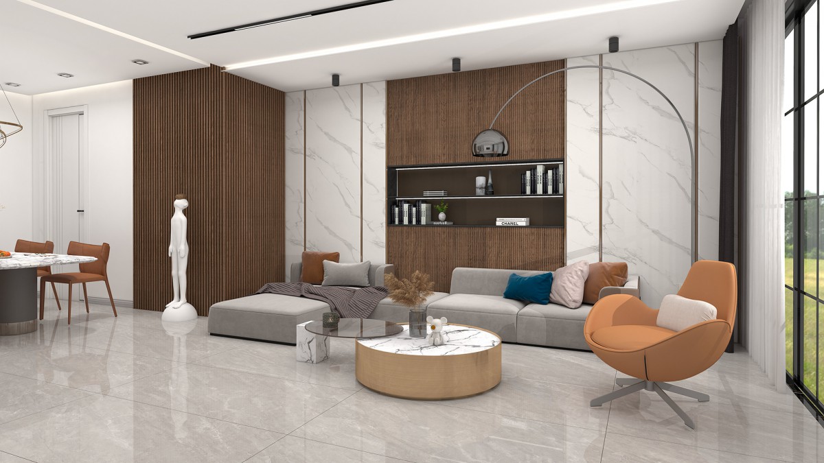布伦特灰岩板将优雅的中灰色调,应用于充满品味,艺术格调的客厅空间,视觉上更趋于自然,舒适,轻描淡写地为生活增添上一种独特的韵味。