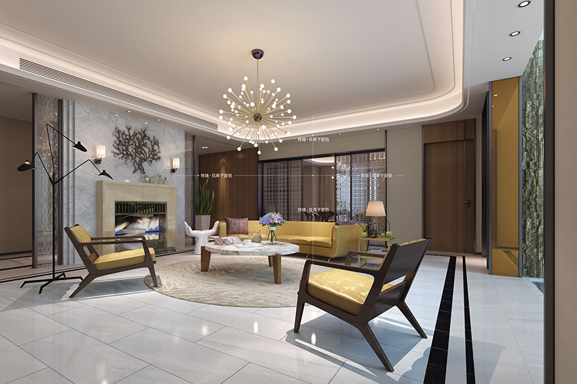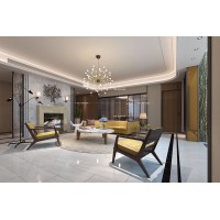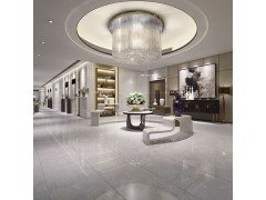 砖面特色鲜明,浅灰色衬底。白色线纹穿透其中,并伴有晕染的金边色带,精致透亮、迷人优雅的视觉感,亦使空间具备更丰富的表现手法。