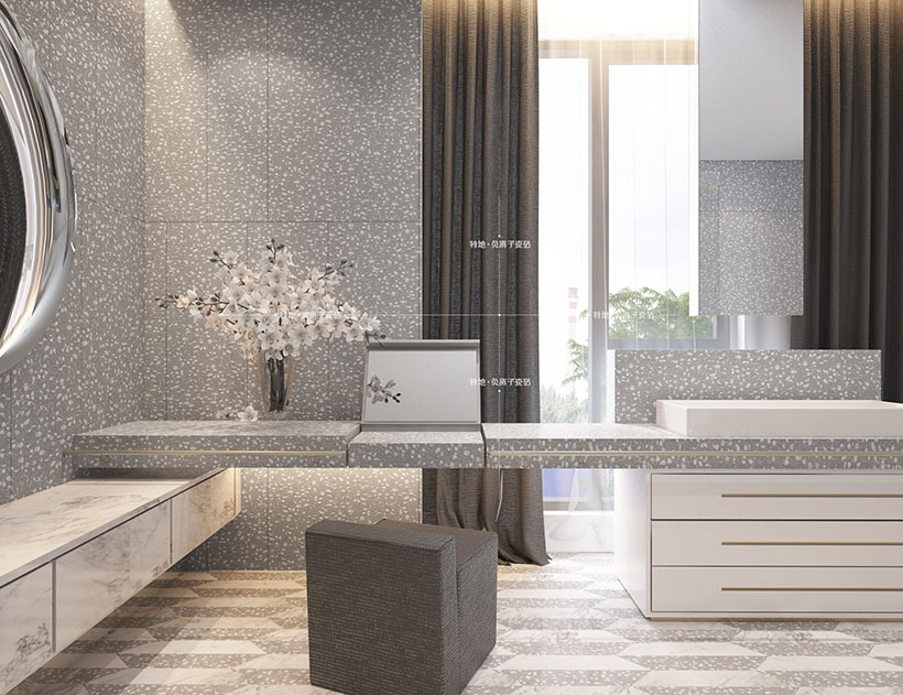 灵感源于荷兰印象派画家梵高的名画《星空》,张扬的钻石白邂逅神秘的高级灰,跳跃而充满灵性,奇幻而魅惑的肌理极富感染力,在创意的哲思中映衬出现代奢华风格的空间艺术。