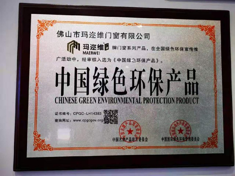 玛迩维牌门窗入选为“中国绿色环保产品”