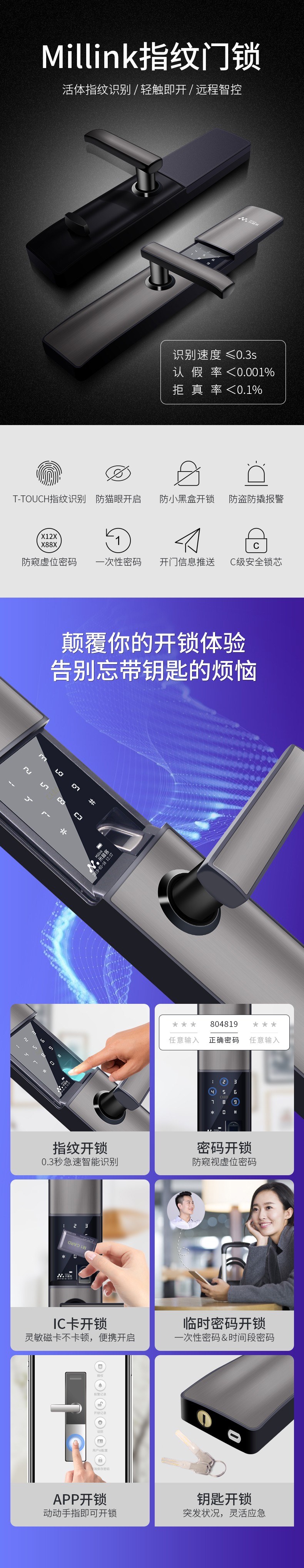 开锁方式: 指纹/密码/APP/语音/钥匙/IC卡