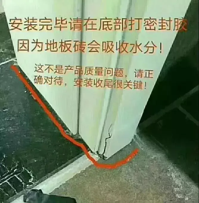 4、固定在套板上的套线尽量紧靠墙体;因墙体不垂直或厚度不均导致门套线与墙体有缝隙,缝隙请装饰公司及时收口,且套线正面禁止打枪钉。