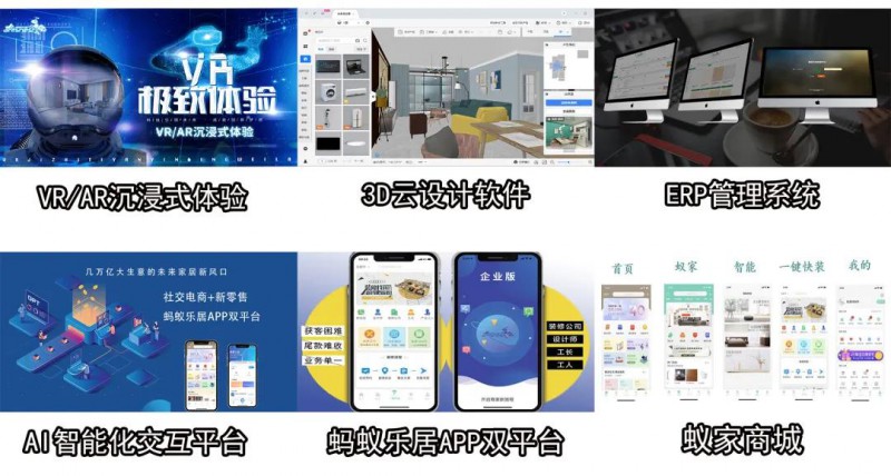 围绕家装建材庞大的运营生态系统,蚂蚁乐居通过互联网大数据+人工智能AI核心算法和AR、VR、3D等技术解决家装行业痛点,ERP系统,工长、设计师、平台”三方共享服务交互系统, 蚂蚁乐居同时重点打造智慧物流和仓储配送体系,利用人工智能、大数据、区块链技术打造自动化、无尘化生产车间,为智能家居、建材产品的供应链生产打下坚实基础。