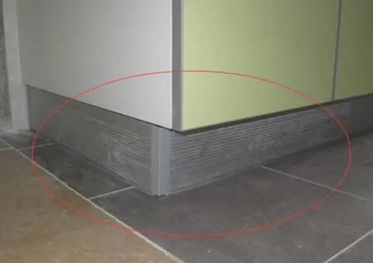这块板也叫踢脚板,平时洗碗洗菜的时候,有了这块板的话,那就不怕脚会踢到橱柜角了,看起来也会好看很多,它的作用就如同踢脚线,可以起到保护橱柜的作用,毕竟橱柜的底部是个基础,如果经常受到碰撞的话,也是很容易坏的,而且还能起到防水的作用,这样就不怕橱柜会受潮了,虽然厨房积水的可能性少,但是多少都会有水的,橱柜底很容易受潮腐烂。