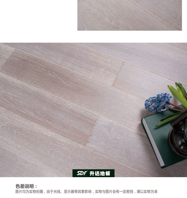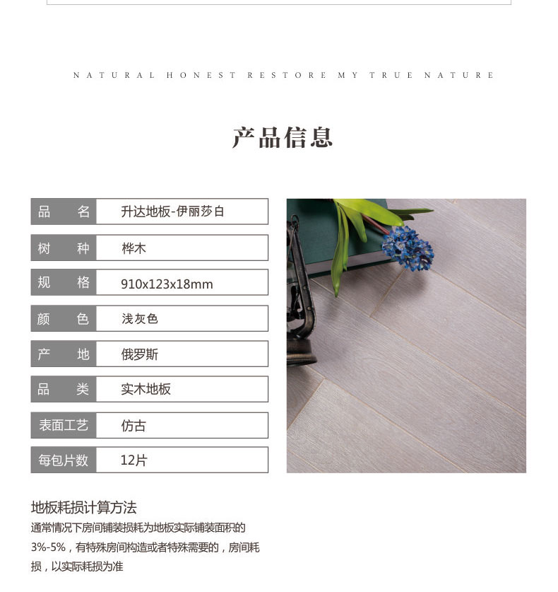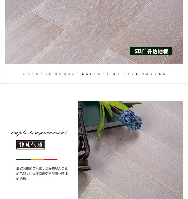 升达实木地板 进口桦木 高雅清新浅灰色 御尊系列 伊丽莎白