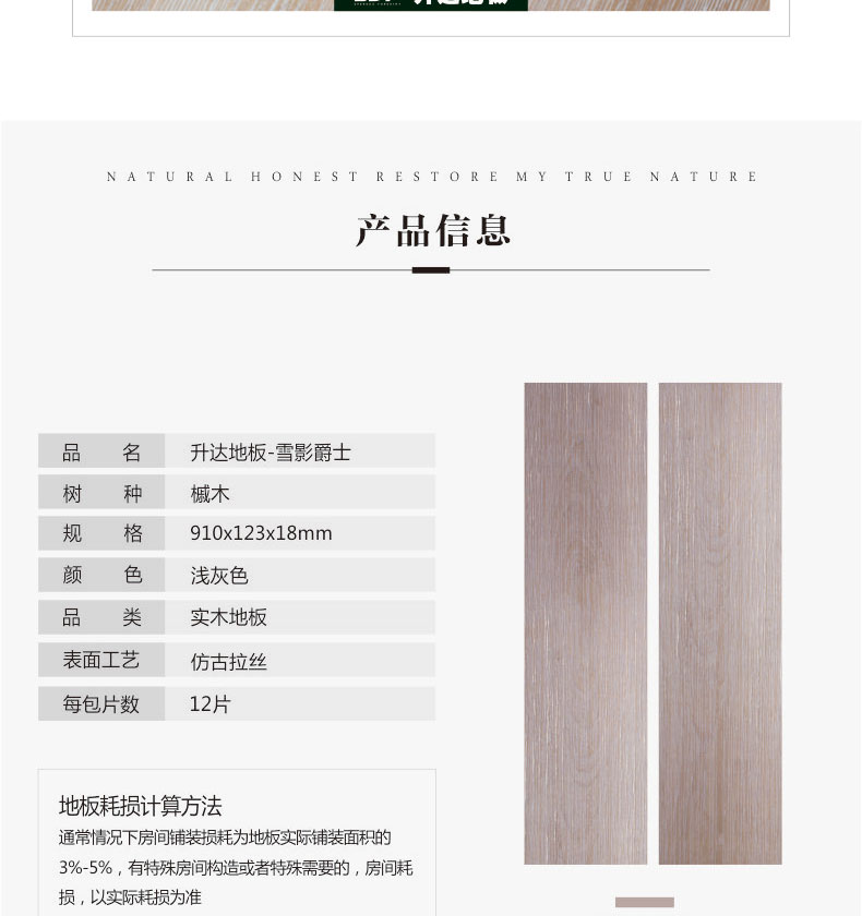 升达实木地板 北美进口槭木 北欧风格浅灰色 雪影爵士