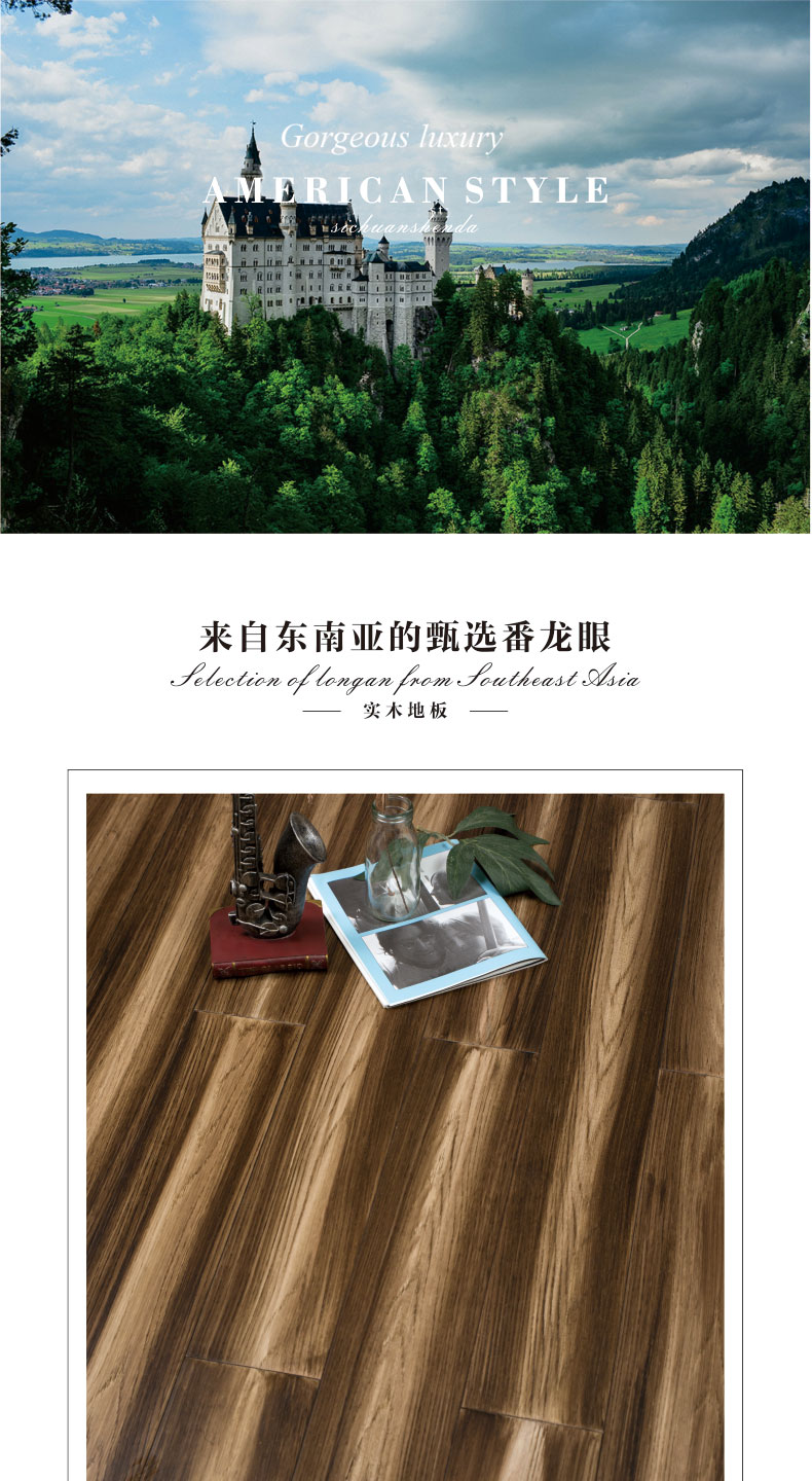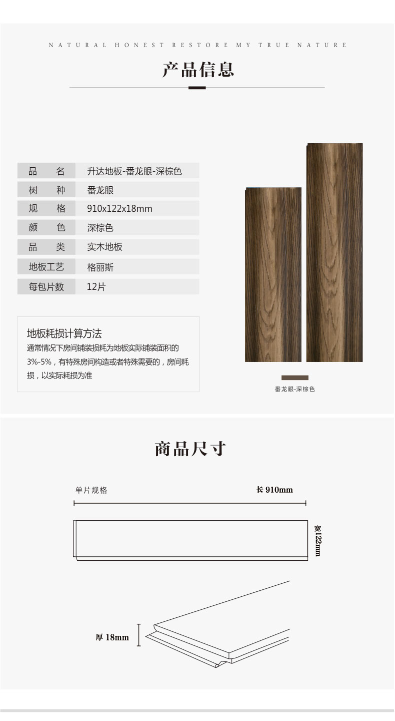 升达实木地板 番龙眼客厅卧室环保地板 番龙眼深棕色