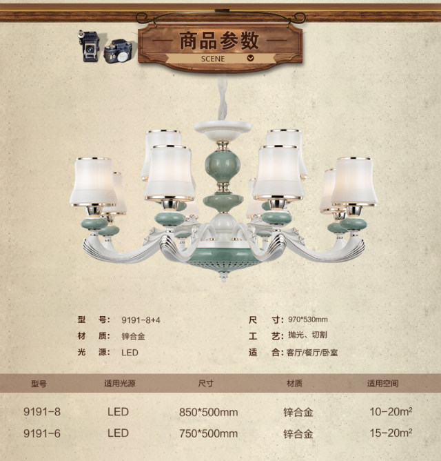 东方灯饰ZT欧式锌合金客厅餐厅吊灯9191
