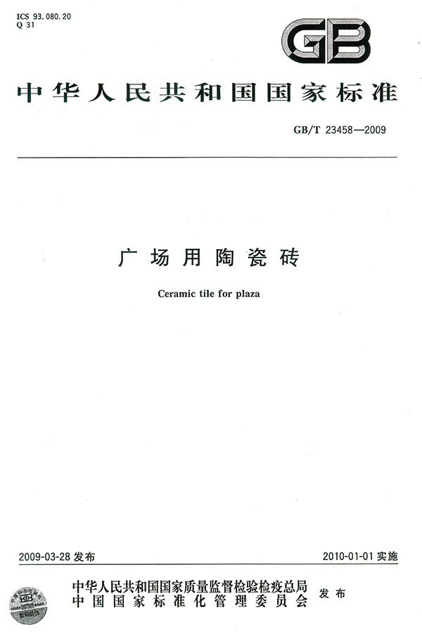 2008年参加起草《广场用陶瓷砖》国家标准(GB/T23458-2009)。