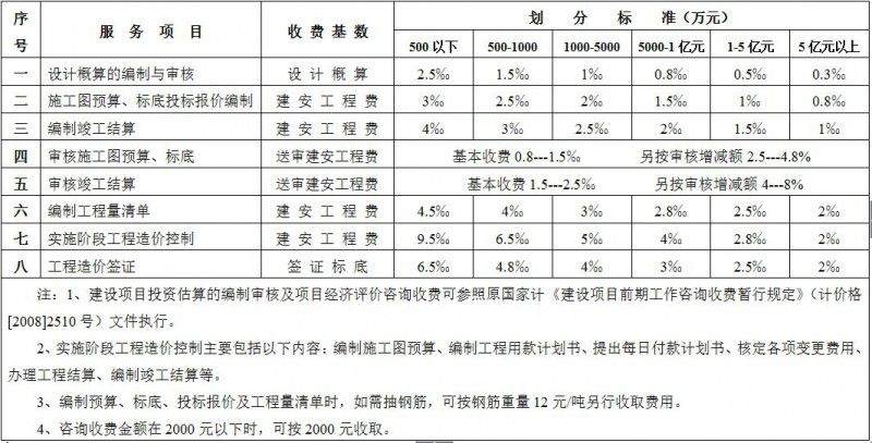 工程造价咨询服务收费(暂行)标准