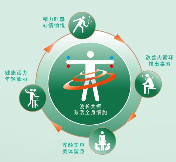 在生物活力波的作用下,全身细胞被激活,感觉精力旺盛充满活力,心情愉悦,从而加速身体内循环,促进体内毒素和垃圾的排出,在不知不觉中达到美容、减肥、美体、强身等保健效果。