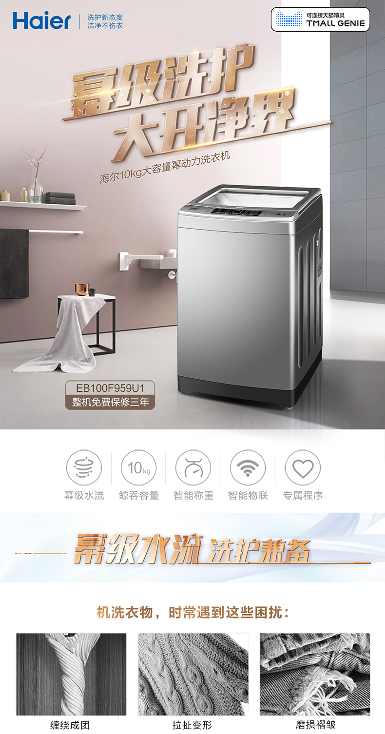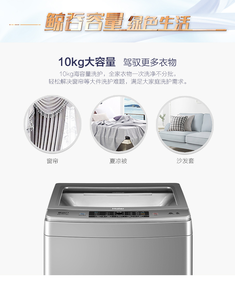 海尔 EB100F959U1 10公斤大容量智能波轮洗衣机