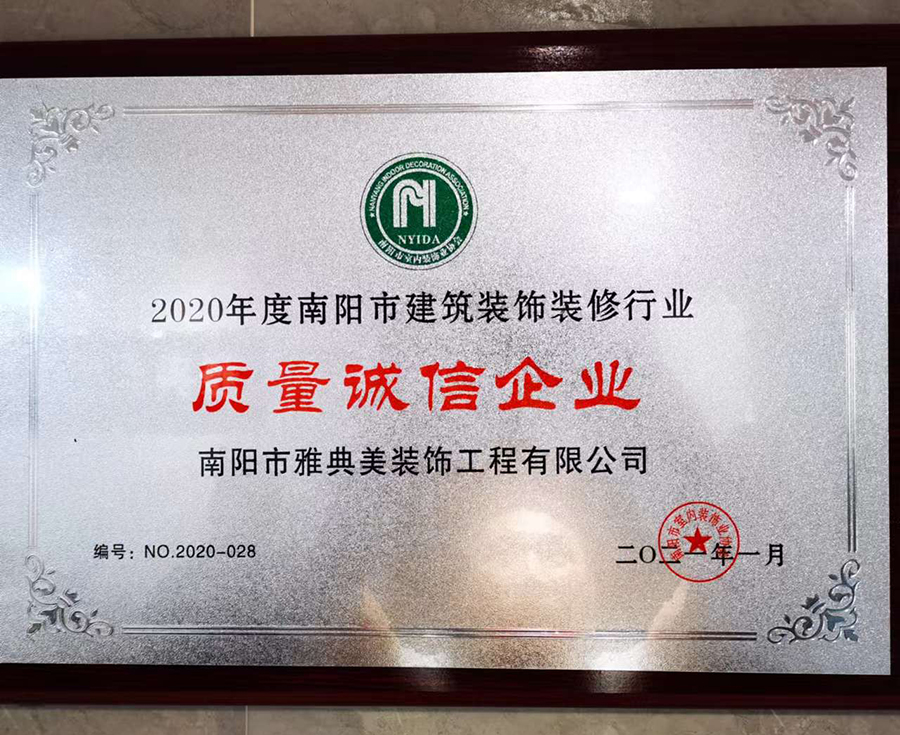 2020年度南阳市建筑装饰装修行业质量诚信企业