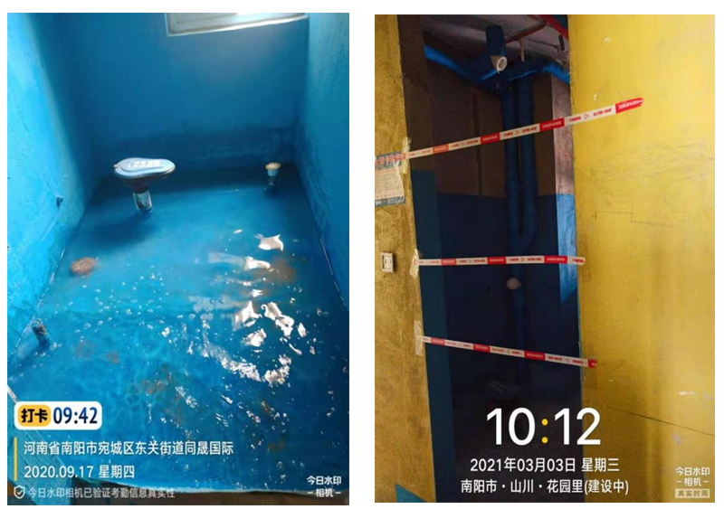 9、冲刷地面,及时清理积水,冲刷的水不得流出施工范围,防止渗漏殃及楼下。做到无浮尘,无沙石,无杂物,清理墙面及地面后,进行管道灌水冲刷防止管道堵塞。