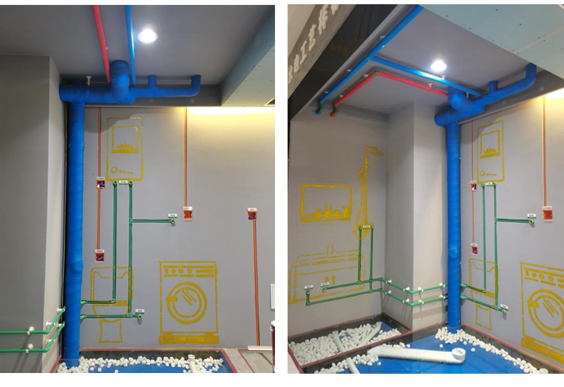 5、布冷热水管时,布管应上热下冷,左热右冷,冷热平行间距不小于200mm,保证整管使用合理。
