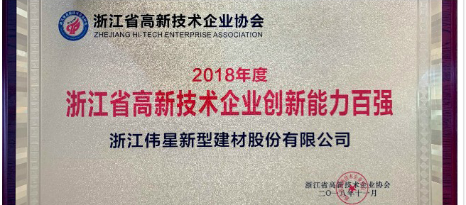 荣誉资质 伟星新材斩获 “浙江省高新技术企业创新能力百强"称号!
