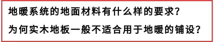 地暖系统要求地面装饰材料热阻小、吸水率低、膨胀变形小。瓷砖、大理石类地面材料尤其适用,其次选地暖专用实木复合类地板。